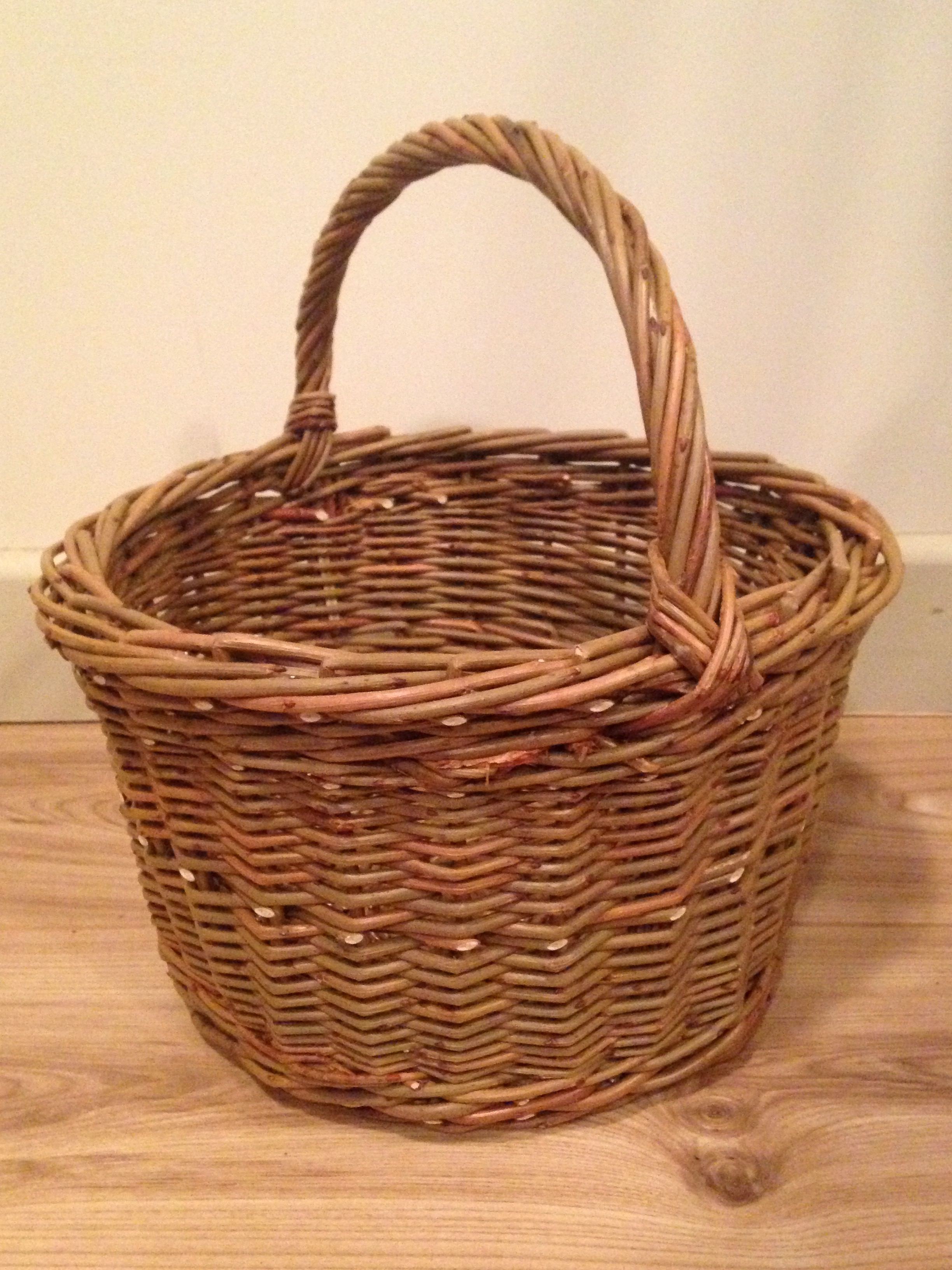 I saw a photo of a similar basket in an old book and thought I’d try to make one myself. The wire mesh was slightly fiddly to place over all the uprights but I got there eventually.