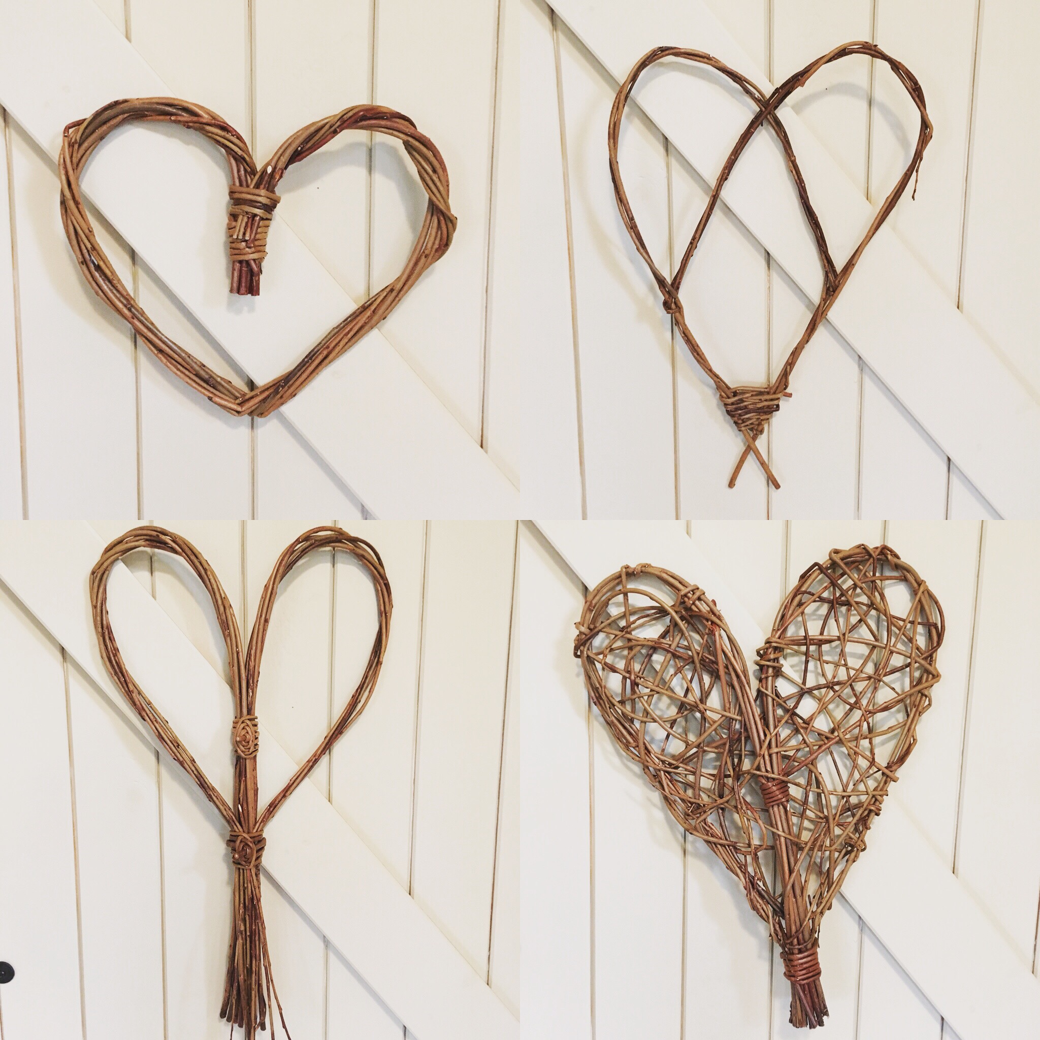 They wove two hearts each, in three different designs and decorated them with a gorgeous selection of dried flowers, Hessian ribbons, raffia and string.