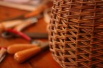 Zigzag weave is set up in the same way as French randing. In this basket I used double rods. When you’ve worked a row in one direction you take the weavers back in the other direction on the next row. By alternating the direction of the weave in this way, the zigzag climbs up the stakes.