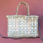 This little bag is plaited from rush. It is started with a check weave and then folded in half diagonally. The sides are plaited one row at a time. It really helps to make sure the check weave is as square as possible to begin with . When the sides reached the required height I did a level folded border and plaited a 3 strand handle secured with string bindings. Fingers crossed he likes it!