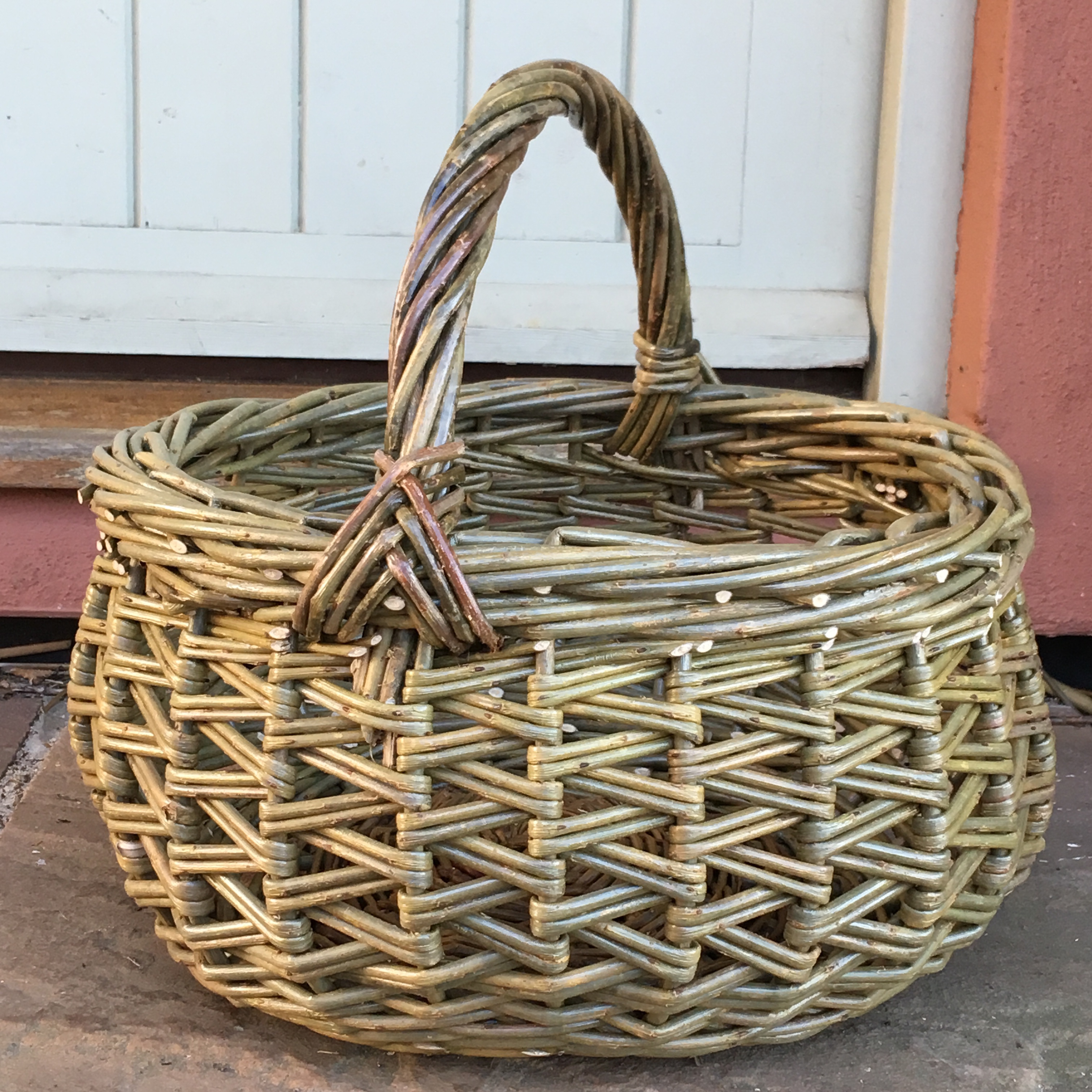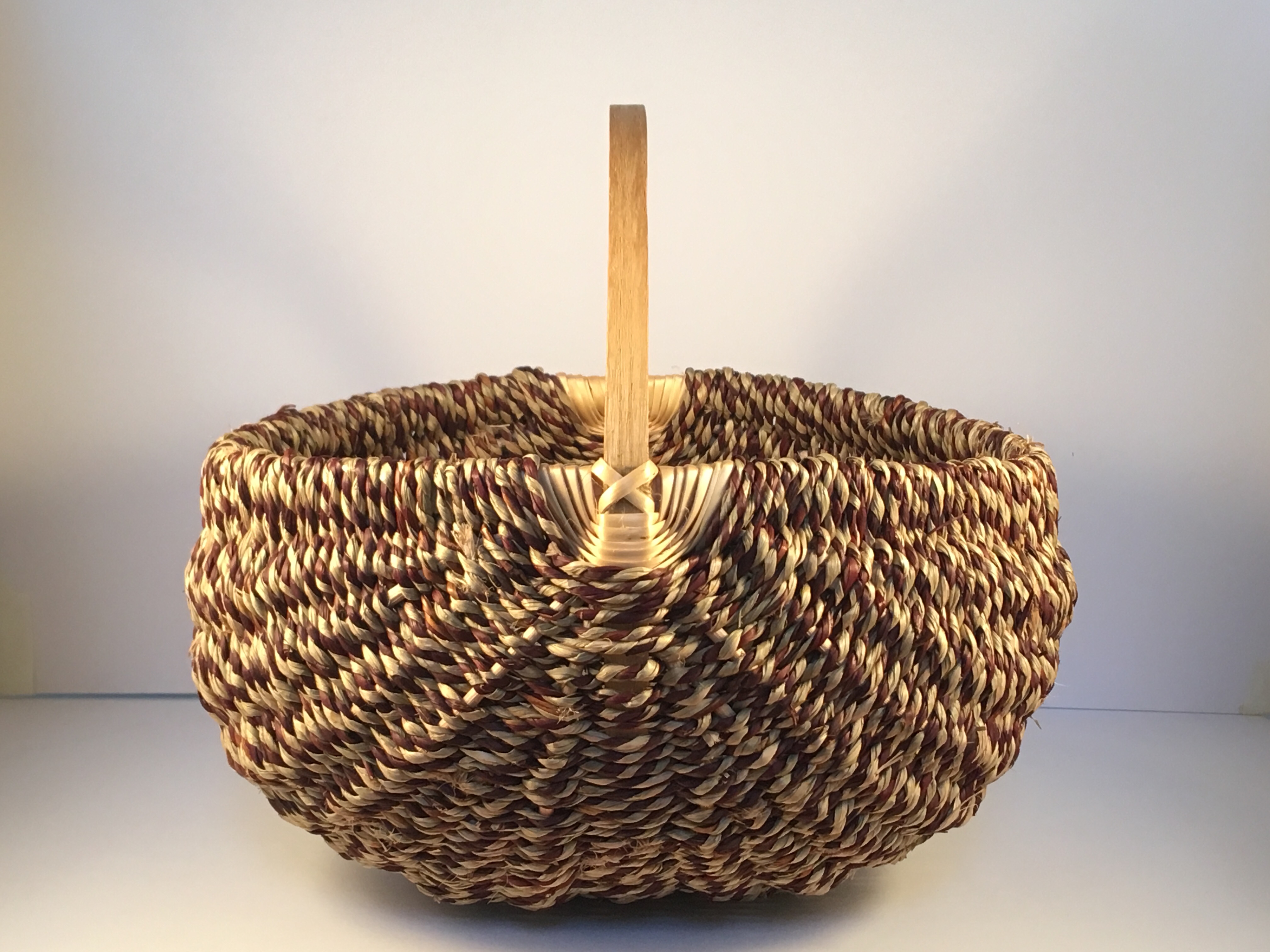 This round shape worked well with the zigzag weave on this shopping basket. It’s one of a number of pieces I’m making for the Worshipful Company of Basketmakers trade fair in a few weeks.